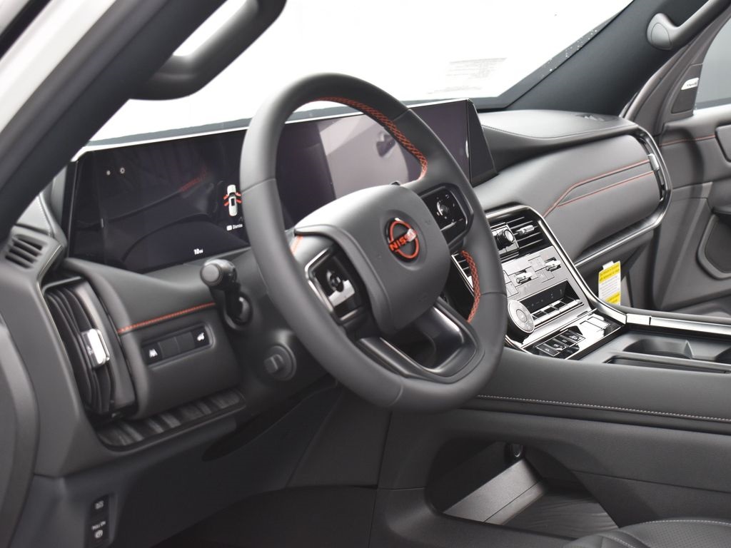 ABS brakes, Active Cruise Control, Alloy wheels, Compass, Electronic Stability Control, Front dual zone A/C, Heated door mirrors, Heated Front Bucket Seats, Heated front seats, Illuminated entry, Low tire pressure warning, Navigation System, Power Liftgate, Remote keyless entry, Traction control, 12 Speakers, 3rd row seats: split-bench, 4-Wheel Disc Brakes, Adaptive suspension, Air Conditioning, AM/FM radio: SiriusXM w/360L, Anti-whiplash front head restraints, Apple CarPlay/Android Auto, Auto High-beam Headlights, Auto tilt-away steering wheel, Auto-dimming door mirrors, Auto-dimming Rear-View mirror, Auto-leveling suspension, Automatic temperature control, Brake assist, Bumpers: body-color, Delay-off headlights, Driver door bin, Driver vanity mirror, Dual front impact airbags, Dual front side impact airbags, Emergency communication system: NissanConnect Services, Four wheel independent suspension, Front anti-roll bar, Front Bucket Seats, Front Center Armrest, Front fog lights, Front reading lights, Fully automatic headlights, Garage door transmitter: myQ Connected Garage, Genuine wood dashboard insert, Heated steering wheel, HVAC memory, Knee airbag, Leather steering wheel, Memory seat, Navigation system: Google Maps, Occupant sensing airbag, Outside temperature display, Overhead airbag, Overhead console, Panic alarm, Passenger door bin, Passenger vanity mirror, Power door mirrors, Power driver seat, Power passenger seat, Power steering, Power windows, PRO-4X Leather Quilted Insert Seat Trim, Radio: NissanConnect w/SiriusXM 360L, Rain sensing wipers, Rear air conditioning, Rear anti-roll bar, Rear reading lights, Rear seat center armrest, Rear window defroster, Rear window wiper, Reclining 3rd row seat, Security system, Speed control, Speed-sensing steering, Speed-Sensitive Wipers, Split folding rear seat, Spoiler, Steering wheel memory, Steering wheel mounted audio controls, Tachometer, Telescoping steering wheel, Tilt steering wheel, Trip computer, Turn signal indicator mirrors, Variably intermittent wipers, Voltmeter, Wheels: 20" x 8.5J Painted PRO-4X Alloy, ABS brakes, Active Cruise Control, Alloy wheels, Compass, Electronic Stability Control, Front dual zone A/C, Heated door mirrors, Heated Front Bucket Seats, Heated front seats, Illuminated entry, Low tire pressure warning, Navigation System, Power Liftgate, Remote keyless entry, Traction control.Elevated Automotive's Elevated Nissan serves Kansas City, Merriam, Overland Park, Lenexa, Olathe, Shawnee, Leawood, and surrounding metropolitan areas. We are committed to providing our customers with outstanding service and an easy purchase process. Call (816) 941-0770 for details and to schedule your V.I.P. Test drive. Advertised price includes dealer financing discount and requires financing through dealer lender at standard rates. Advertised price does not include tax, title, license and other fees.