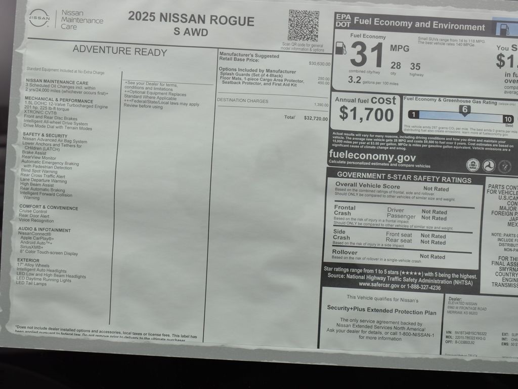 Priced below KBB Fair Purchase Price! Nissan Certified Details: * Limited Warranty: 84 Month/100,000 Mile (whichever occurs first) * Transferable Warranty * Roadside Assistance * Warranty Deductible: $100 * 7 Year/100,000 Mile Limited Warranty, 24/7 Hour Roadside Assistance, Carfax Vehicle History Report, Plus 1 Year Pre-Paid Maintenance Included. Gas Powered Nissan Models Only. * 167 Point Inspection * Vehicle HistoryClean CARFAX.Elevated Automotive's INFINITI of Kansas City and Elevated Nissan serve Kansas City, Merriam, Overland Park, Lenexa, Olathe, Shawnee, Leawood, and surrounding metropolitan areas. We are committed to providing our customers with outstanding service and an easy purchase process. Call (816) 941-0770 for details and to schedule your V.I.P. Test drive. Advertised price does not include tax, title, license, administrative fee or Elevated Advantage fees.17" Aluminum Alloy Wheels, 4 Speakers, 4-Wheel Disc Brakes, ABS brakes, Air Conditioning, Alloy wheels, AM/FM radio: SiriusXM, Apple CarPlay/Android Auto, Auto High-beam Headlights, Black Splash Guards (Set of 4), Blind Spot Warning, Brake assist, Bumpers: body-color, Cloth Seat Trim, Delay-off headlights, Driver door bin, Driver vanity mirror, Dual front impact airbags, Dual front side impact airbags, Electronic Stability Control, First Aid Kit, Floor Mats w/1-Piece Cargo Area Protector, Four wheel independent suspension, Front anti-roll bar, Front Bucket Seats, Front Center Armrest, Front reading lights, Fully automatic headlights, Illuminated entry, Knee airbag, Low tire pressure warning, Occupant sensing airbag, Outside temperature display, Overhead airbag, Overhead console, Panic alarm, Passenger door bin, Passenger vanity mirror, Power door mirrors, Power steering, Power windows, Radio data system, Radio: AM/FM NissanConnect, Rear anti-roll bar, Rear seat center armrest, Rear side impact airbag, Rear window defroster, Rear window wiper, Remote keyless entry, Speed control, Speed-sensing steering, Speed-Sensitive Wipers, Split folding rear seat, Spoiler, Steering wheel mounted audio controls, Tachometer, Telescoping steering wheel, Tilt steering wheel, Traction control, Trip computer, Variably intermittent wipers.